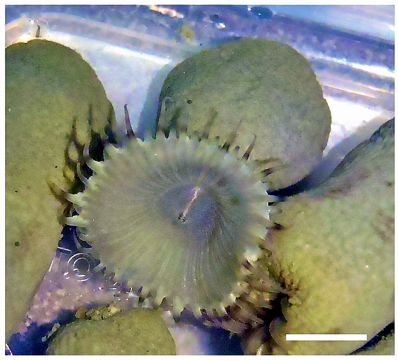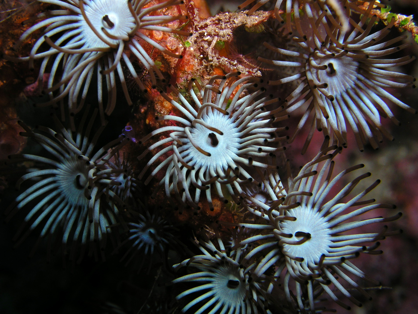 La boca en estás pequeñas anémonas funciona como boca para ingerir alimentos y como ano para expulsar los deshechos.